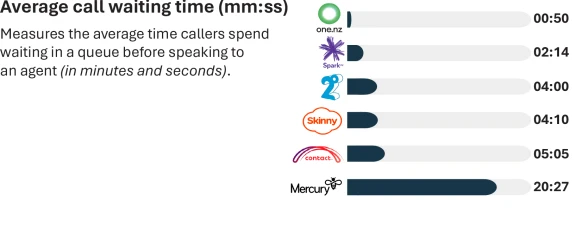 We asked providers to tell us the average time that their customers waited in a queue before speaking to a customer service representative.