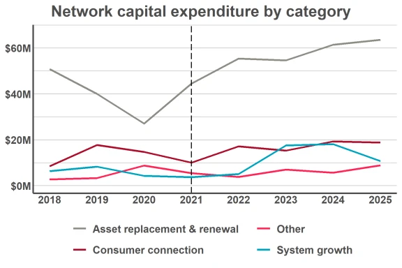 Aurora continued in the year ending March 2024 to increase its expenditure on asset replacement and renewal, customer connection and system growth.